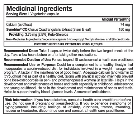 Synetrim® CQ is known as ‘THE ORIGINAL CISSUS QUADRANGULARIS’ and is a member of the grape family native to West Africa. Synetrim CQ helps to support healthy blood glucose levels and could be a complement to a healthy lifestyle that incorporates a calorie-reduced diet for individuals involved in a weight management program. A source of antioxidants.
